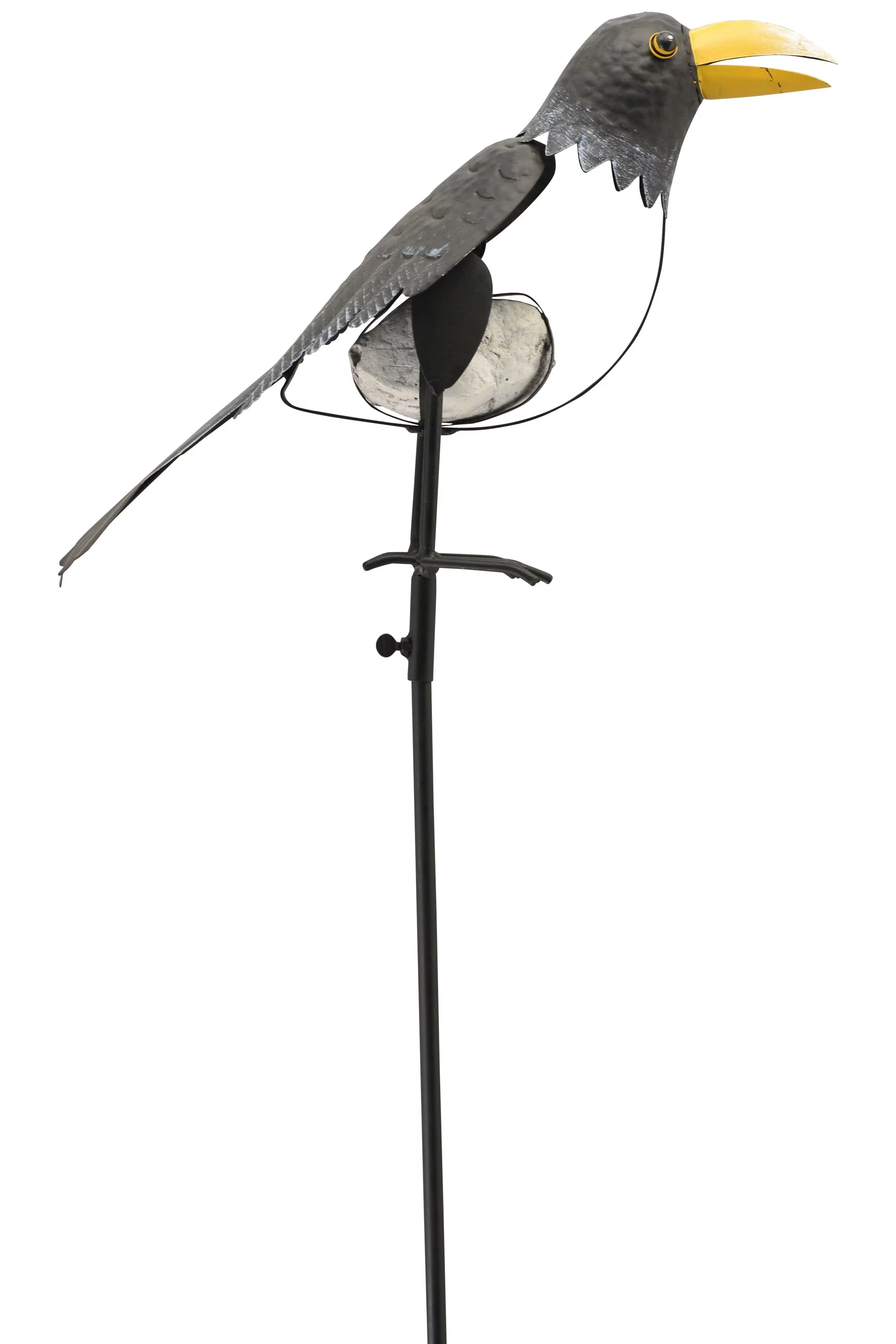 Декоративна фігура у вигляді птаха на стійці — яскравий акцент для вашого саду чи квітника. Виготовлена з міцного металу вона легко встановлюється в ґрунт завдяки загостреному штирю.