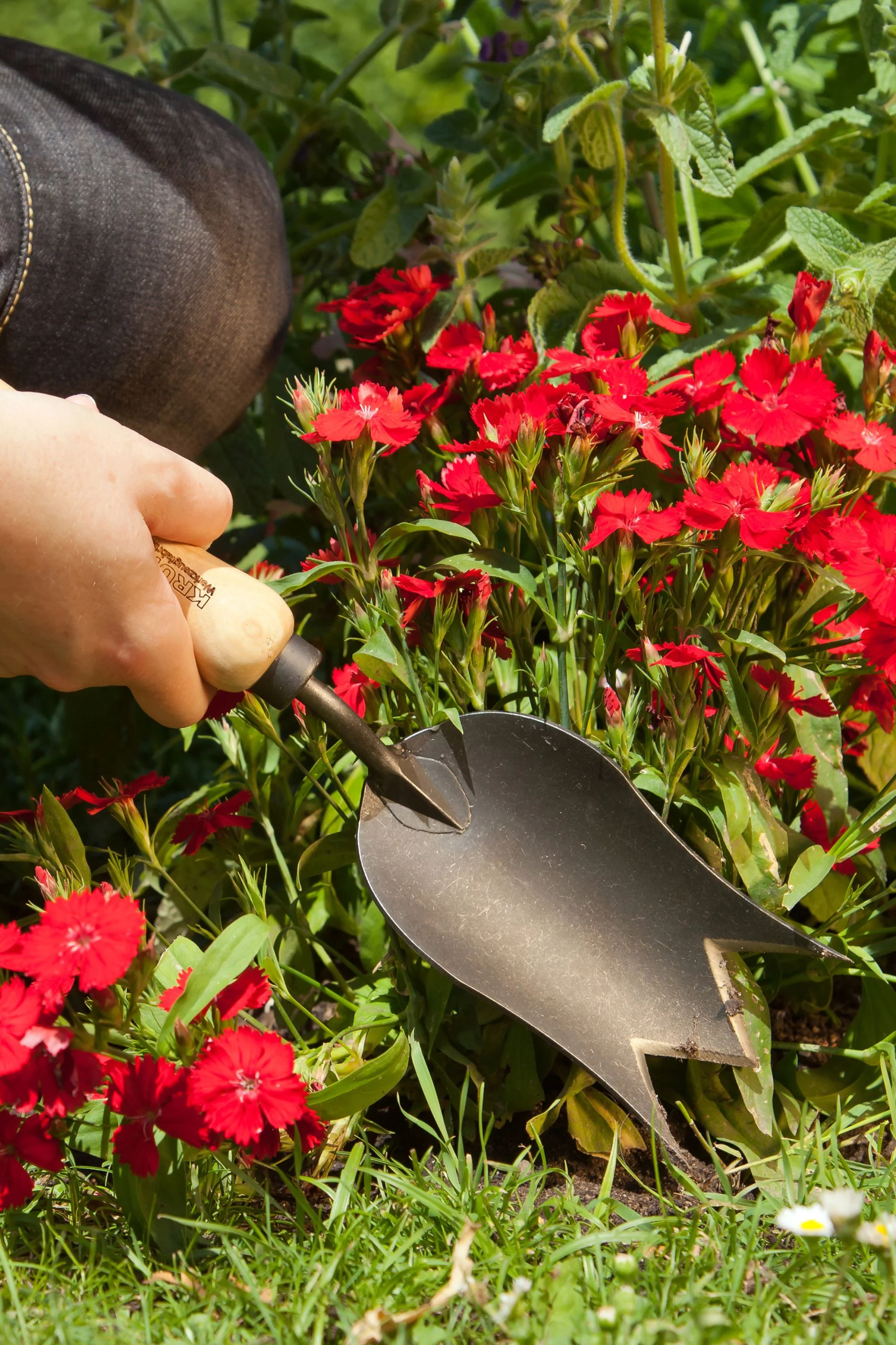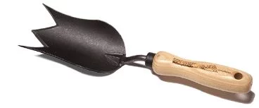 Садова лопатка з короноподібним лезом — спеціалізований інструмент для садівників, який ідеально підходить для висаджування цибулинних рослин, створення лунок та роботи з твердим ґрунтом. Завдяки особливій формі леза у вигляді «корони» лопатка легко проникає в землю, забезпечуючи точність і зручність під час роботи.