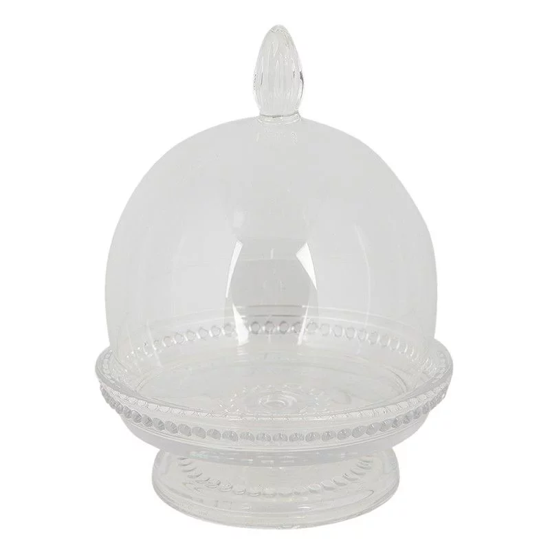 Вишуканий скляний клош із підставкою — стильний аксесуар для сервірування та декору. Ідеально підходить для подачі випічки, сиру, фруктів або використання як декоративний елемент для свічок, флораріумів чи улюблених аксесуарів.