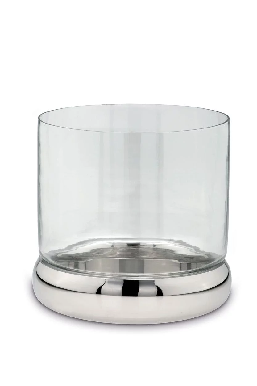 Елегантний скляний підсвічник-ліхтар на масивній основі з полірованої нержавіючої сталі — стильний акцент для будь-якого інтер’єру. Висока циліндрична колба надійно захищає полум’я, створюючи м’яке затишне сяйво як у приміщенні, так і на терасі.