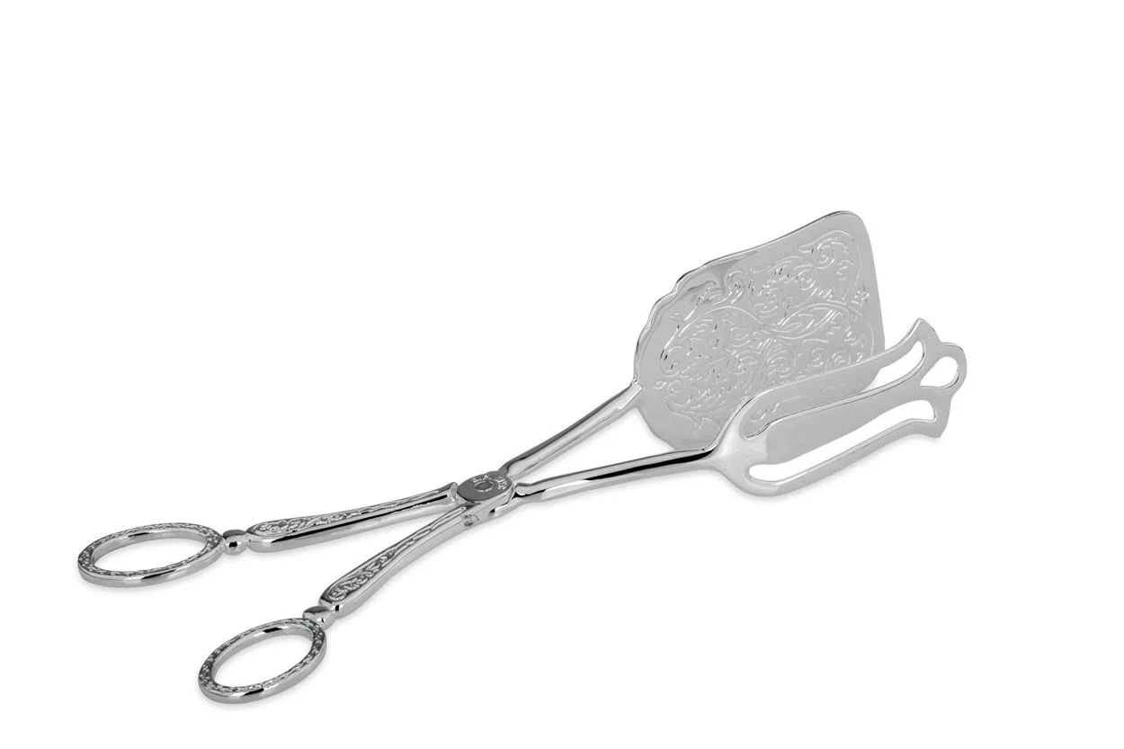 Вишукані щипці зі срібним покриттям — стильний і практичний аксесуар для подачі тортів, тістечок, круасанів чи печива. Завдяки декоративному орнаменту вони стануть не лише зручним інструментом, а й елегантною деталлю сервірування святкового чи повсякденного столу.