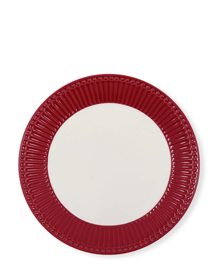 Стильна обідня тарілка Greengate Alice Dark Red — це поєднання класики, затишку та якості. Виготовлена з міцного кам’яного посуду (stoneware), вона має насичений темно-червоний відтінок, який чудово виглядає як у повсякденному сервіруванні, так і на святковому столі.