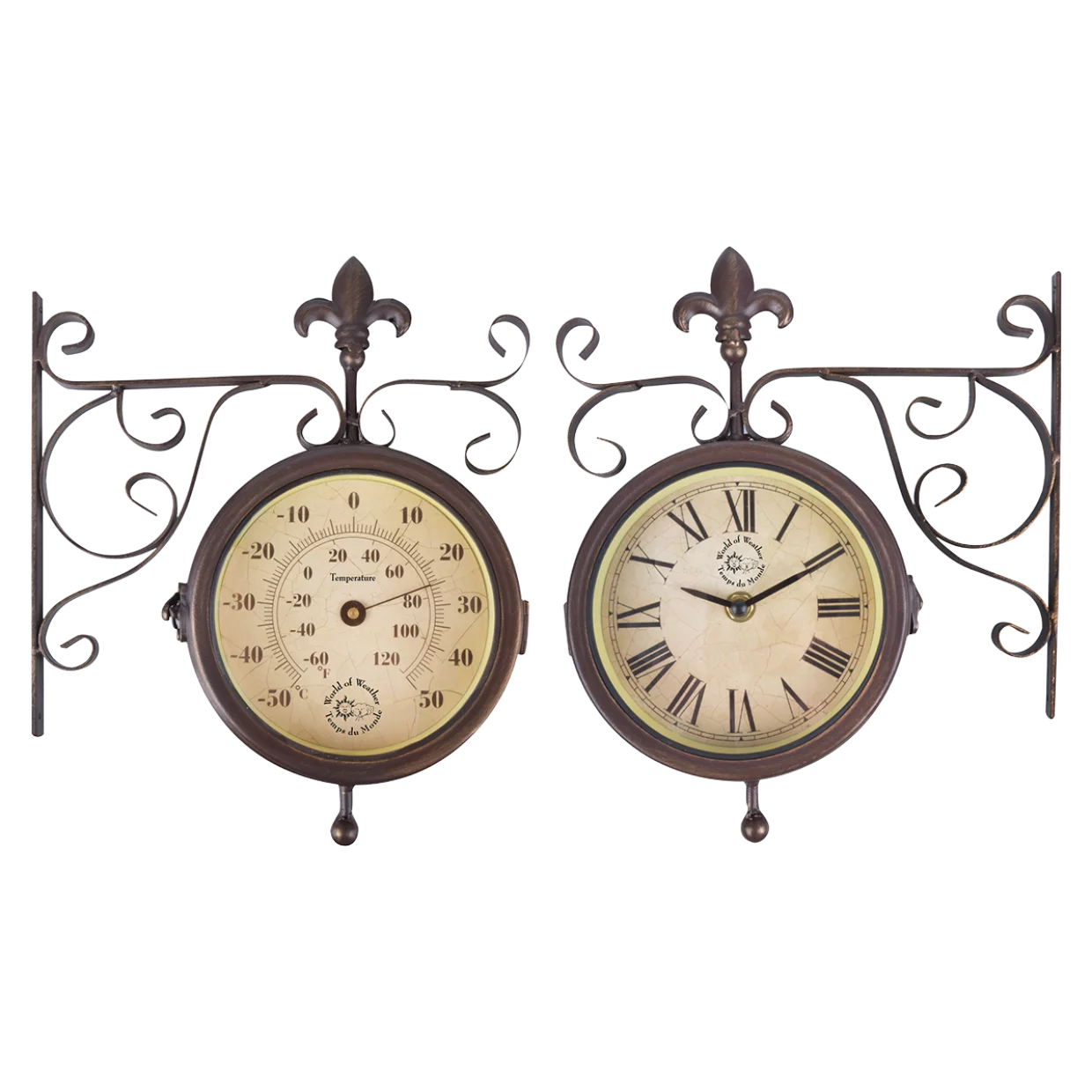 Цей елегантний настінний садовий термометр-годинник у формі годинника поєднує стильний дизайн та практичність. Завдяки класичному оформленню він стане чудовою окрасою для саду, тераси, балкона або вхідної зони будинку. Велика циферблатна шкала дозволяє легко зчитувати температуру навіть на відстані.До комплекту входить кріплення.Працює від батарейки(не входить до комплекту).